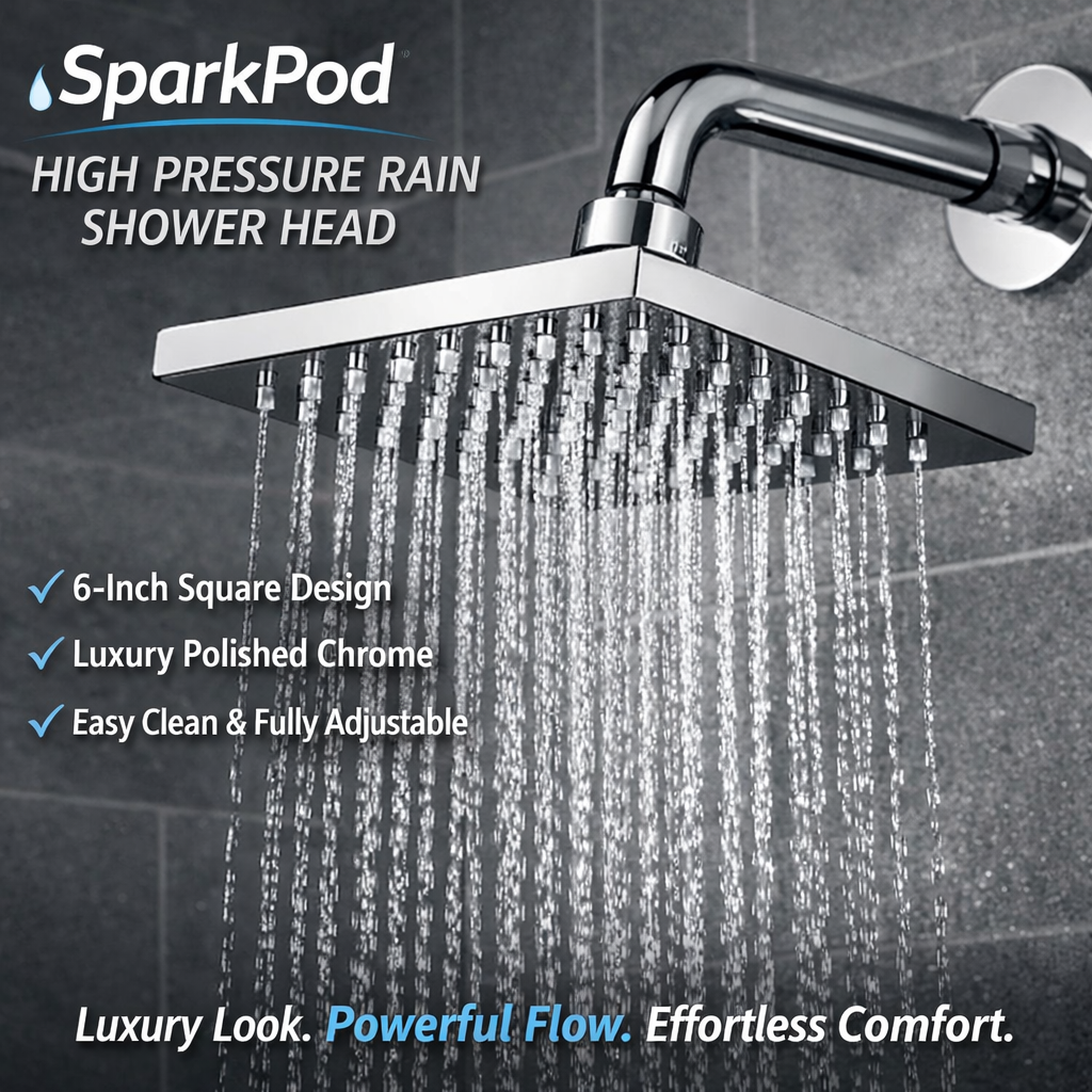 Designed with a sleek 6-inch square polished chrome finish, this luxury shower head delivers a powerful, even rainfall that melts stress away in seconds.